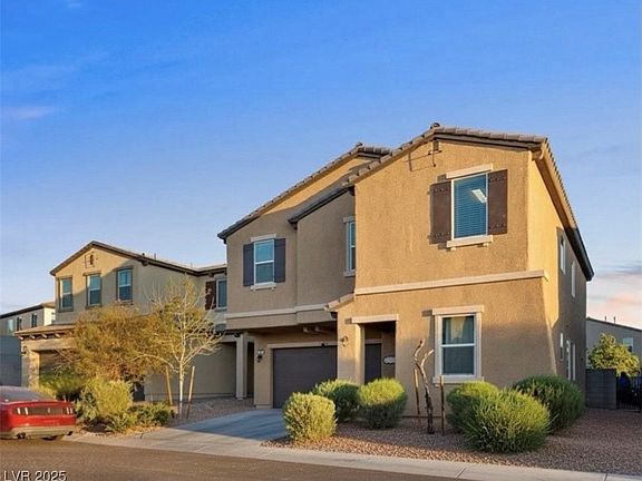 Upstairs, the primary suite feels like a private retreat with its oversized layout, large walk-in closet, and spa-like bathroom featuring a sunken tub and separate shower. Two additional bedrooms upstairs are equally generous in size. Enjoy outdoor living in the low-maintenance backyard with pavers and desert landscaping, ideal for gatherings and quiet evenings alike. The home also offers a 2-car garage and paved driveway, all set at the end of a peaceful cul-de-sac. Community amenities include a park and playground, with stunning city views right from the street.