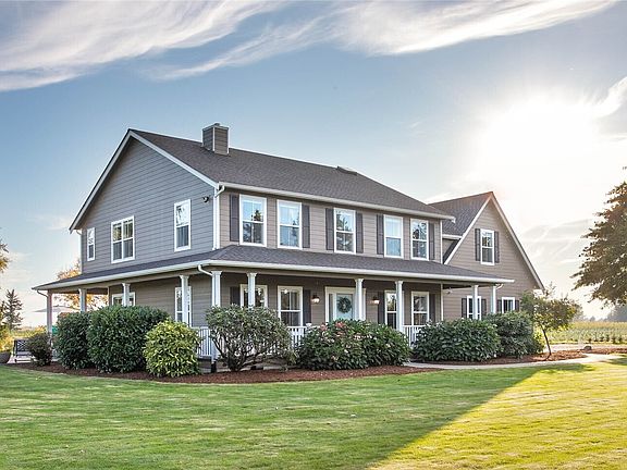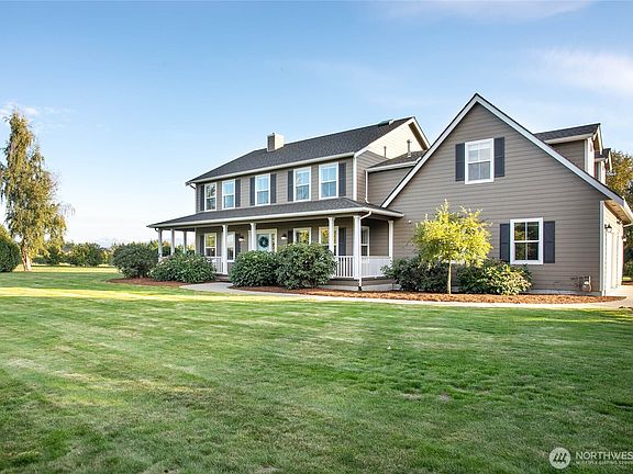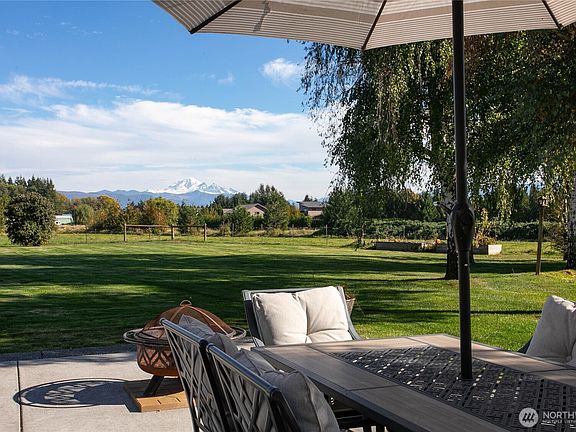 Incredible opportunity to own an upgraded, mid-county mountain-view farm home on 1.4 park-like acres! Tucked away down a private drive and bordered by farm and nursery lands, this home has it all. 5 bedrooms, an office/den, a massive bonus room with a home theater above the garage, and 2.5 bathrooms. Enough space to spread out, but cozy enough to call home. Double-sided gas fireplace, country kitchen with exposed brick and wooden beams, plus a large outdoor patio for entertaining. Take in breathtaking views of Mt. Baker as you sit by the pond, work in the detached 700 sq foot shop, or play frisbee in the yard. RV and boat parking, too. A rare and special property with simply too many improvements to list. Don't let this one slip away!