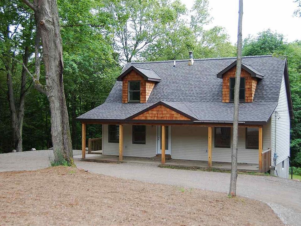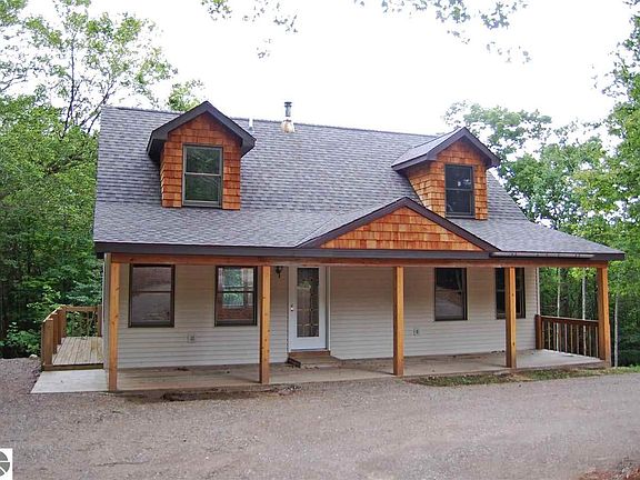 Private home. Located in Honor, convenient to Leelanau County and Traverse City, is this charming four bedroom, two bathroom home. The large front porch, window dormers, cedar shake accents, knotty pine paneling, and wooded setting lend the feeling of a cabin like retreat, but the open kitchen, living and dining areas make it a space for modern living! This home has two bedrooms and a bathroom on the main floor, two bedrooms and a bathroom on the upper floor, and a full (unfinished) walk out basement. The large, circling drive and towering trees will welcome you! So much potential to see!