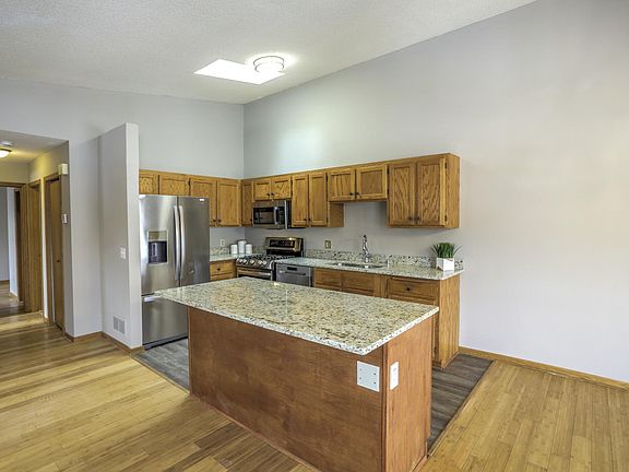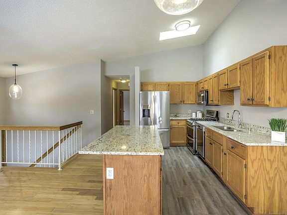 End Unit - 3 Bed/ 2 Bath townhome offers an open floor plan w/ vaulted ceilings, freshly painted throughout! Large kitchen island w/ granite countertops, stainless steel appliances, New modern light fixtures & LVP flooring. 3 season screened-in porch off of dining room. Spacious bedrooms - primary BD has good size walk-in closet. Both bathrooms have been nicely updated! Walk out LL Family room has wood burning fireplace w/ Chicago brick surround. Convenient location w/ park and walking paths nearby.
