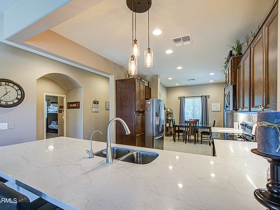 This home in the master planned golf course community of Anthem Merrill Ranch in Florence, Arizona is turn key and ready for you to occupy it! 3 bedroom, 2 bath, 2 car garage, corner lot with extensive pavers, artificial turf, mature landscaping and more! The kitchen has been updated including large breakfast bar that overlooks your great room giving it a open feeling. All appliances included. This house is ready for you, add to your portfolio as an investment or make it a vacation home. Furniture included. Golf cart available on separate bill of sale. Check out the community center with pool, spa, water park, tennis, basketball, indoor work out and classes, parks, catch and release pond!