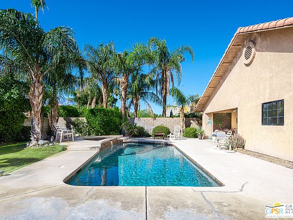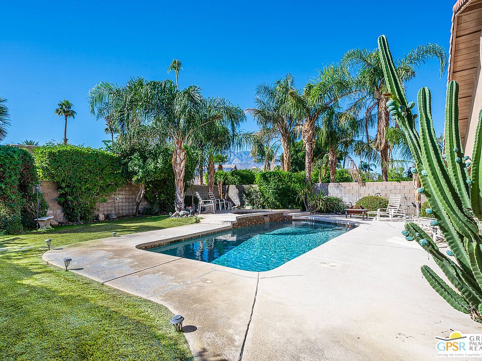 Ideally situated in Cathedral City's sought-after Panorama neighborhood, this home presents a rare opportunity to enjoy resort-style living at a incredible value price. This 1,971 sqft residence features three spacious bedrooms and two bathrooms, thoughtfully designed for comfort and functionality. The inviting sunken living room creates a warm, conversational atmosphere, while large windows invite soft natural light. The kitchen and living spaces flow seamlessly for easy entertaining. Step outside to a private backyard oasis with peek-a-boo mountain views and a saltwater PebbleTec pool and spa, perfect for enjoying the desert sunshine. Recent upgrades include a newer A/C (2020) and hot water heater, adding peace of mind to its timeless appeal. A two-car garage provides ample storage and convenience.