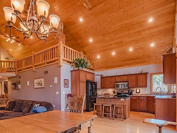 Stunning 4 bedroom 2.5 bath half log home located just minutes from the Point/Plover area with over 7 acres of privacy.Picturesque setting on over 7 acres located just minutes from the Stevens Point/Plover area, this home is in the heart of the east side of Portage County. Have desired privacy and seclusion with just a few minute commute... Magnificent 4 bed 2.5 bath half log loft style home will leave you breathless. Stamped concrete will welcome you into the enormous great room with vaulted ceilings. Keep warm with the pot stove or the wood-burning insert. Granite counter top island is a perfectly utilized space for food prep and kitchen efficiency. Manicured lawn with underground sprinklers. Main floor master bedroom suite with custom tile walk-in shower. Stunning hickory hardwood. Potential to entertain and enjoy the outdoors on the wrap around deck and porch area. On top of all this, the home has an extra garage with a finished full bath and upper loft finished area. Upper level walk-out deck. Must see property, call to schedule today!