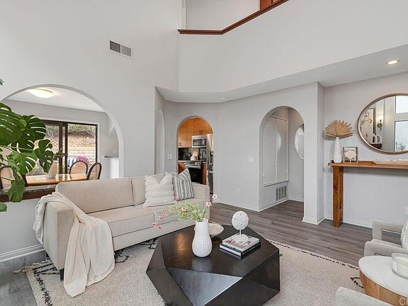 Ocean Close Location! Welcome to Harbor Pointe, an exclusive gated community of classic Cape Cod–style homes just minutes from Carlsbad State Beach. This charming residence offers 3 bedrooms, 2.5 baths, and a private cul-de-sac setting conveniently close to the community pool.   Inside, vaulted ceilings, arched details, and skylights create a bright, airy feel. The spacious floor plan includes a downstairs flex room, perfect as a media room, playroom, or home office, and a living room with a cozy fireplace. The updated kitchen features sleek European cabinetry with lazy Susan shelving, dramatic marble counters with a granite backsplash, and a farmhouse sink. A separate dining room with built-in cabinetry adds character, while upstairs a small reading retreat offers a quiet escape. Middle bedroom upstairs has a Murphy Bed which conveys!  Recent updates include fresh interior paint, luxury vinyl flooring, and custom lighting, giving the home a clean California modern beach vibe. Outdoors, enjoy your own backyard oasis with a soothing fountain and BBQ, ideal for entertaining or relaxing. Built-in storage in the two car garage!  Harbor Pointe offers low HOA fees, no Mello-Roos, and community amenities including gated entry, pool, and front-yard maintenance. The location is unbeatable, close to Poinsettia Park, top schools, hiking trails, golf courses, shopping, dining, and easy access to I-5.