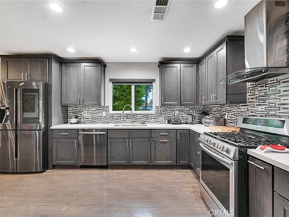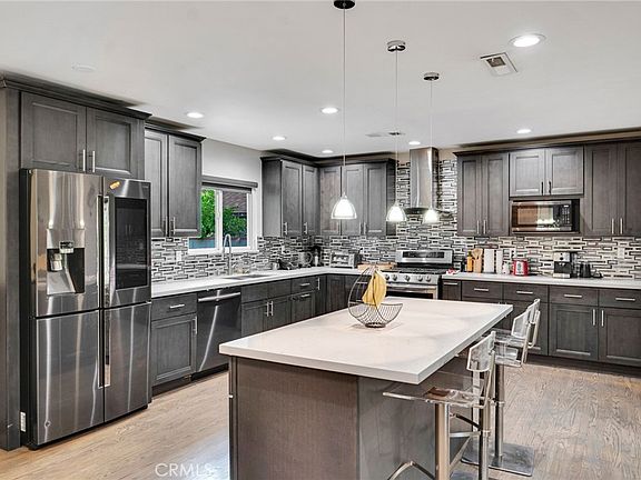 The centerpiece of this home is the beautifully remodeled kitchen, featuring premium finishes, sleek countertops, and state-of-the-art appliances, perfect for culinary enthusiasts. Hardwood flooring flows throughout, adding warmth and elegance to every room. The right wing of the home offers four generously sized bedrooms and two thoughtfully designed bathrooms, providing both comfort and tranquility. Step outside to a private retreat—a covered patio perfect for alfresco dining and a built-in hot tub to relax and unwind. Located in the heart of Valley Glen, this home offers suburban serenity with urban conveniences. Enjoy tree-lined streets, top-rated schools, and easy access to shopping, dining, and major freeways. With its vibrant community and proximity to the North Hollywood Arts District, this location is ideal for families and professionals alike.