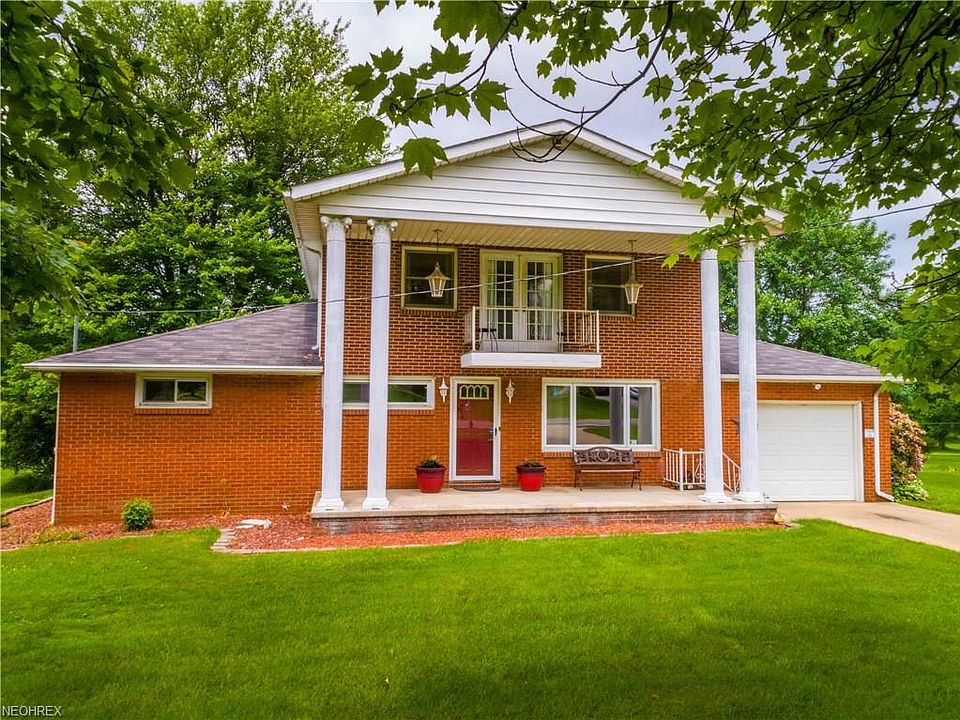 What a rare find in the Perry School district! 2260+ sq. ft. brick and vinyl colonial style home. Kitchen has been updated with quality cabinets and Corian counters (from Windy Hill) ceramic tile floor and all appliances. Large family room with beautiful stone fireplace (gas) and french doors leading to large cement patio. 2 bedrooms and full bath on first floor. Second floor has 2 bedrooms with balcony access off the master. Full basement has a rec room and bonus room/office. Attached garage with cement drive and turn around. Gas heat, central air, 200 amp electric w/emergency 800-watt generator hook-up. Back yard features a 24 x 40 pole building with side entry and overhead garage doors at both ends. 12 x 20 picnic pavilion w/brick fireplace, walk thru grape arbor and numerous fruit trees. Public sewer and well (public water available) BONUS INCLUDED IN THIS PRICE: adjoining vacant lot (100 x 500). Both lots total 2.3 acres. Buyer could have option to sell vacant lot at a later date. 2nd parcel # 0430953.
