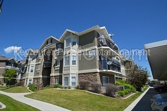 This is a nice condo unit with three bedrooms, 2 bathrooms and was built in 2004. It is located on the op floor for utmost privacy and unparalleled views of the mountains! It has vaulted ceilings, faux wood floors from entrance into kitchen, has main balcony and a private balcony for master bedroom, plus walk-in closet and private bath with balcony. Cozy kitchen has oven/range, refrigerator, dishwasher and lots of pantry space. Clean tiles in second bathroom and laundry room, washer/dryer included. Single covered parking spot with guest parking available. It has a clubhouse and pool access. It is in a great location, close to Jordan Landing and minutes to Bangerter. A clean and well-maintained unit that you will surely love!