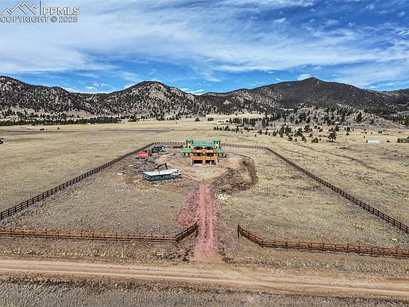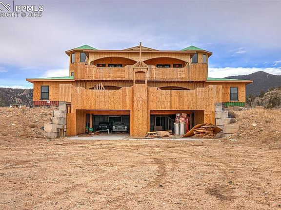 Welcome to a one-of-a-kind opportunity to bring your vision to life in this unique unfinished home situated on 5 sprawling acres with panoramic Rocky Mountain views. This property offers over 15,000 sq. ft. of blank canvas for those seeking to create their dream residence. The fully stamped blueprints and building plans lay the foundation for a residence that can be transformed into a gentleman's hunting lodge base camp or trophy home. The property's Wild West-inspired design adds a touch of frontier spirit, setting it apart from conventional homes. Inside, the potential for customization is limitless, with plans for an indoor shooting range and escape room. The structure itself is built to be bunker-tough, ensuring durability. This usable acreage provides ample space for outdoor pursuits, and the property is fully fenced with railroad ties, enhancing both privacy and security. Water is abundant with a high-production well, and a septic system is already installed, offering full self-sufficiency in this expansive, scenic setting. Embrace the freedom that comes with this property, as there are no restrictive covenants or homeowners' association, allowing you the liberty to customize and utilize the space as you see fit. Whether you envision a private retreat, an entertainer's paradise, or a combination of both, this unfinished home is a rare canvas for your imagination to flourish. Seize the opportunity to make this property uniquely yours, where luxury meets frontier spirit in a setting that is both rugged and refined. Take a tour today!