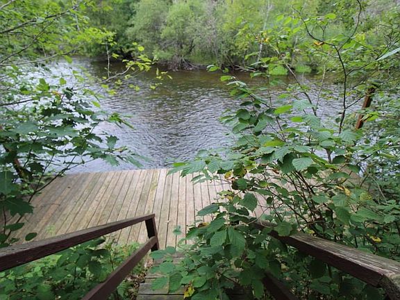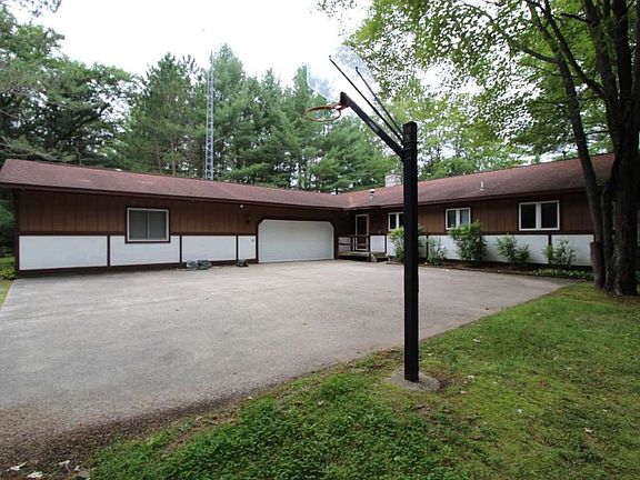 Situated on 2.40 acres of land with 165 feet of frontage on the North Branch of the AuSable River. Steps leading down to dock overlooking the river. This sprawling ranch features a beautiful island kitchen with granite counter tops and loads of cabinet space, a large master en suite with split entry bathroom complete with jetted tub and stand up shower plus multiple closets and a sitting room overlooking the river off the master bedroom. Enormous great room with cathedral ceilings, stone wood burning fireplace and tons of windows to take advantage of the river views just a few yards from the front of the house. Split floor plan ranch with additional bedrooms and bath on the other side of the house. This could easily be converted to a 4 bedroom home if needed. 2nd bath completely