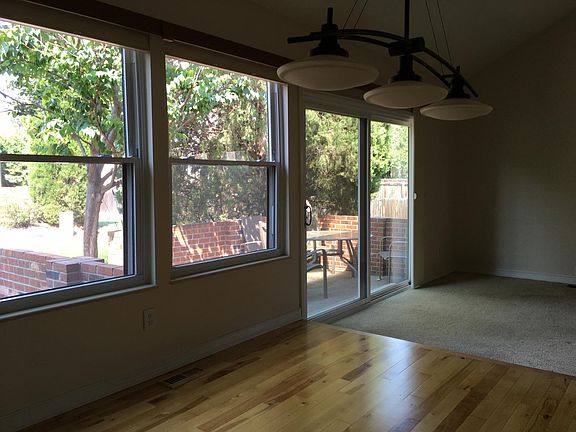 This gem is a 2-bedroom, 2.5-bath townhouse with an office and 2-car garage in a small, quiet development with easy access to the W-Line and 6th Avenue. Banks of west-facing windows make the main rooms bright and cheerful and the high ceilings in the open dining area and living room make this 1450 sf home seem even larger. The lighting also shows off the newly refinished birch floors which cover most of the first floor. The kitchen was remodeled just a few years ago and has pullout drawers and soft close doors. There is even a kitchen bar for enjoying coffee or informal meals. The spacious master bedroom has two long closets, two sinks and large mirrors. Outside, there are two patios on the west side one off the kitchen that comes with a 4-burner grill and one off the living room. The patio off the living room has a patio table and 4 chairs and two mature trees that make this area a semi-private refuge. An office is located just inside the front door and comes with a bookcase, a built in 3-door cupboard with 3 drawers and a large free-standing cupboard to store office supplies. It is an excellent home office! The 2-car garage comes with two sets of shelves, a hanging 3-door cupboard, a free standing 3-door cupboard with 3 drawers which doubles as a bench, and a large area for overhead storage. This location offers convenient access to the rest of the city and the mountains as the complex is located within walking distance of both the Wadsworth and Lamar W-Line stations and is about a mile from 6th Avenue. No smoking allowed. Pets negotiable.