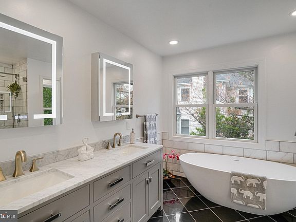 The Sound of convenience comes with luxury finishes & prime location with stunning pricing…where else will you find a spacious 6-bedroom, 3.5 bathroom, 3-level, 2 car attached garage newly renovated home in North Arlington for under $1,500,000? 6869 Washington Blvd is an easy walk to the East Falls Church Metro swiftly delivers you to Dulles International, Reagan National Airport, Pentagon, or D.C. while you enjoy your favorite author or catch up on your emails. The direct access to I-66 is unparalleled! Around the bend the Fall Church City Farmer’s Market will delight your senses. Dash along Langston Blvd to treat your tastebuds at Heidelberg Bakery or follow Washington Blvd to The Italian Store. This home inviting renovations entice the senses from freshly painted throughout, 2-levels of hardwood floors, 3-gas fireplaces, Anderson windows & sliding glass door, open concept floor plan, Carrara marble showers, heated floors, walk-in closets, custom solar light tubes, soaking tub, 2-laundry rooms, front loading washers & dryers, finished lower-level, lower level walk-up, professionally landscaped, architectural shingle roof, garage with fresh epoxied floor, steel beam with hoist system and overhead garage storage. The freshly refinished hardwood floors throughout the main level flow majestically to the inviting living room for a warm guest greeting, turn to the dining room and serve a glass of wine before stepping into your custom kitchen by award winning designer, Allie Mann of Case Design; enjoy quartz countertops, 2 convection wall ovens, built-in microwave, Crystal Cabinets with child locks, undermount lighting, French door refrigerator, stainless steel appliances, kitchen water reverse osmosis dispenser, recessed lighting, gas range with tile to ceiling custom backsplash showcasing vented hood, lighted transom display cabinets, bump out window for herbs & flowers over the double sink, eat-in breakfast nook overseeing the lush professionally landscaped yard, built-in pantry with pull out shelves, island with pendant lighting, storage & enticing seating as the aroma from a great Italian sauce fills the air! The family room shines with the gas fireplace & sliding glass door to a two-level entertainer’s deck. Main level powder room shines with midnight blue vanity, Carrara marble counter & travertine flooring. Gliding up the refinished hardwood stairs inspires tranquility with 4 bedrooms featuring new hardwoods. Primary suite with whispers of romance of the glowing built-in gas fireplace, 2-walk-in closets, new en-suite with Carrara marble rain shower with wand, niches plus thoughtful foot niche, soaking tub with wand, dual marble vanity, cabinet mirror with anti-fog & dimming light, heated granite floors & water closet. Bedroom level laundry area offers abundant cabinet, granite counter space, soaking sink & raised front loading washer & dryer. Hall bath Carrara marble shower, 2-niches, dual vanity, granite counters & linen closets. Lower-level bonus den fireplace is a fantastic gathering space to play board games, cards, and share life adventures. Two bedrooms, one with a grand walk-in closet and both enjoying their private entrances to the shared en-suite. Laundry area & walk-up yard access round out the excellent convenience of the lower level. 6869 Washington Blvd delivers ease of access to East Falls Church Metro, I-66, I-495, D.C., Pentagon, Falls Church City, Reagan National Airport, Dulles Airport, Westover, Arlington Blvd, Rte. 50, farmers markets, parks, trails, shops & restaurants.