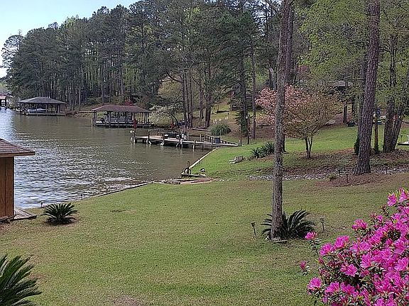 Beautiful A-Frame home with 4 bedrooms/3bath. This custom home by Greg Waddell boasts lake views from almost every room. Large double car garage and workshop that is fully insulated and zoned to be climate controlled just like the home itself if desired. Granite throughout with tiled bath floors, and durable LVP. Enjoy the stone fireplace with gas logs on those cold winter nights. There are bonus rooms for your work at home office, craft room, etc.. The large two-story storage building can double as a man cave and she shed with lake views. A full deck is on the lakeside for grilling and enjoying the BIG VIEW! do not forget the single boathouse with max dock and lift. You are minutes to the marinas and restaurants. This is your LAKE HOME! Great opportunity in this limited market!