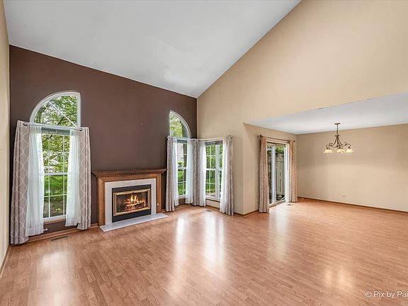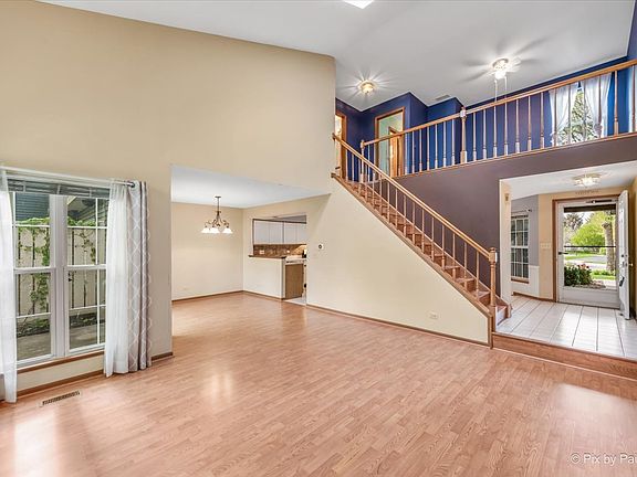 Spacious 2 bed + loft, 2 1/2 bath townhome in desirable Cobblers Crossing. Dramatic 2-story living room with vaulted ceilings, skylights and fireplace. Separate dining room with sliders to a private patio. Open layout kitchen with ample cabinets, pantry and separate breakfast room. Finishing off the main level is a powder room and laundry room. Upstairs is a generous primary bedroom with cathedral ceilings, attached ensuite full bath and large walk-in closet. A second bedroom, another full bath and a sizeable loft space that could be finished as a 3rd bedroom complete the 2nd floor. Attached 2 car garage. Excellent location near shopping, restaurants, I90 and the metra.