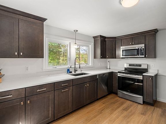 This charming New England Cape will surprise and delight! Experience the appealing blend of modern updates and classic New England style. Gleaming hardwood floors, a beautifully appointed fireplace in the living room and a traditional dining room counterpoint the renovated kitchen, with stainless steel appliances and quartz countertops, providing for comfortable and efficient living! There are two large bedrooms upstairs, with plenty of closet space and additional under-eaves storage. Two more bedrooms round out the ground floor, with great views of the expansive back lawn. A fully finished basement with a cozy fireplace and wood stove insert, newly installed floors and modern lighting offers so many possibilities: a gym, a play room, maybe even a movie theatre! All of this is conveniently situated in desirable Sudbury, with its nature paths, local shopping and easy access to highways. Come and see it today!