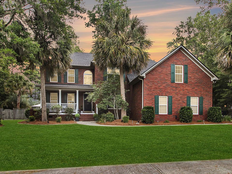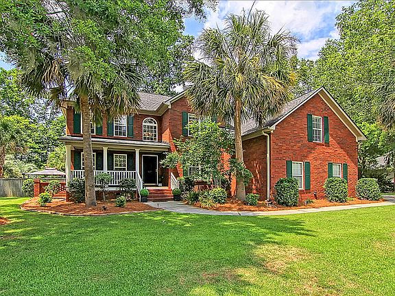 Sellers moving cross-country, so price dropped and favorable consideration of below-list offers for early closing.Welcome home to your best Carolina life! Flanked by large Palmetto trees, and a lawn landscaped with irrigated beds for easy maintenance, this lovely, 6 bedroom, 3.5 bath brick home is tucked away on a quiet circle. Sitting on more than half an acre & backed by a mature green space, it offers plenty of privacy - and space --for your family and guests. In the backyard, you'll immediately picture your family and friends lounging and cooling off in the self-maintained heated, saltwater pool(2021 control system), complete with a slide for kids of all ages, a patio, a large deck, and a Bose outdoor sound system. The 2-story detached 996 square foot, dual zone climate-controlled