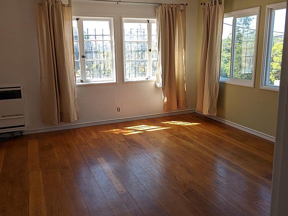 This bright, spacious 720 square foot three-room unit offers a flexible floor plan. The pristine spaces features plank hardwood floors and tile. Contemporary sconces grace the window-filled main room with new linen drapes. Storage abounds with 1 large closet located in the Main room 15' x 18' and 2 closets in the Second room 25' X 8' with a Queen Murphy wall-bed and built-in desk for your office. The huge eat-in kitchen features new base cabinets, a butcher block counter and slate backsplash. There's a gas range, dishwasher, microwave, and back door to a sunny small porch and garden. The white tiled bath also features new tub and vanity with drawers. There's an on-site laundry, shared with the other 4 units in this wonderful classic building all located only a few short blocks to lakeshore/Grand Ave shopping and entertainment and a few steps away from Trader Joes and the Lake Shore weekend Framers Market, Saturday and Sunday. Maintained and managed by real people, not a corporate entity! Definitely worth your time. -Bright and sunny Oakland hill view -Recently refinished plank hardwood floors -New eat-in kitchen update with cabinets and tile floor -Bath features contemporary fixtures, new Tub/shower and 3 Drawer Vanity -Gas heat -Laundry additional $20/month -Great Lakeshore location, just blocks to shops, transportation, entertainment -Cats ok -Shared Garden with fruit trees -Nonsmoking unit -Appliances Gas Range, Refrigerator, Dishwasher and Microwave -Deposit: $2000 -Month-to-Month with 12 month commitment -Month-to-Month with a minimum of 12 month commitment