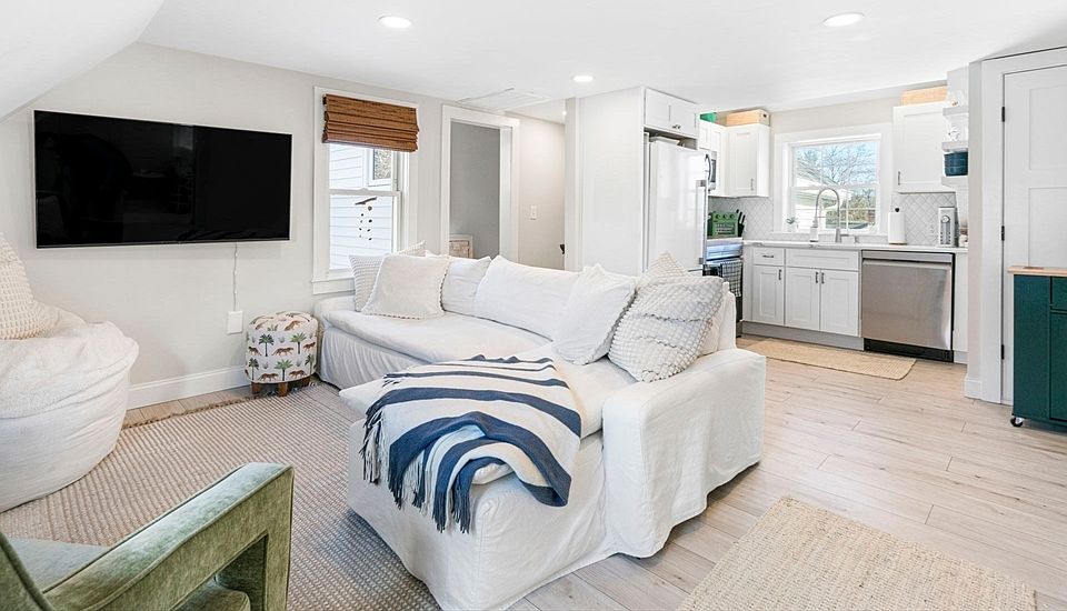 YEAR ROUND RENTAL, INCLUDES ALL UTILITIES, including central air conditioning, heat, electricity, WIFI, trash removal etc. Adorable apartment located in the heart of Norwell center. This apartment has a private entrance with a half bathroom and cute mudroom space. Upstairs you have a front to back kitchen area with living room, an office (currently used as the 3rd bedroom) along with the second bedroom. Around the corner this is a beautiful full bathroom with tiled shower & glass door along w/ full size stackable laundry. The primary bedroom has a walk in closet with pocket door, maximizing floor space. This apartment is above 'The Well' which is a small candy store and gift shop. Parking lot out back w/ two designated spots for tenant(s). Easy living right in the heart of Norwell Center! Apartment being rented with basic (new) furnishings- full bed in the office, 2 twins in bedroom 2 and a Queen in the primary. Living room furniture and all the basic kitchen necessities! Easy living!