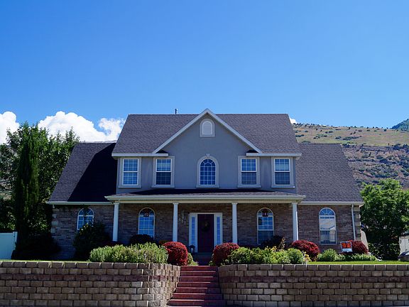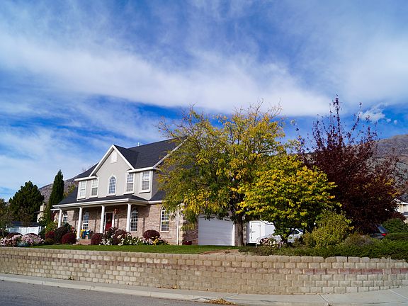 Main floor formal living room, dining room with french doors leading to covered patio. Kitchen with granite countertops and stainless steel appliances. Large family room with french door leading to patio. Fireplace and vaulted ceiling. Half-bath and laundry room. BRAND NEW Wood floors in hall/foyer/kitchen/dining. BRAND NEW carpet with 8-lb pad throughout house-a lovely rich gray which is the "must have" color this year. Upstairs 3 bedrooms and master suite with 2 full baths. New marble tile in master bath. 9 ft ceilings upstairs and on main floor. Two-car garage with shop. Shop area has 3 finished cabinets and overhead storage. Fully finished basement with TV/activity room (or 6th bedroom), food storage room, kitchen with microwave/sink/refrigerator, full bathroom, Large family room and 1 bedroom. Well landscaped front yard with apple, apricot, cherry and pear trees, ornamental trees and flower beds. Back yard has a large shed, fire-pit, full-grown maple, English walnut and ornamental trees, raised red-brick block wall with grape vines, herb garden and garden area with a large covered patio. All rooms recently repainted. BRAND NEW high efficiency furnace and 2 NEW Air conditioning units. Unobstructed views of Utah valley and mountains in all directions. Beautiful park directly across the street. Ready for occupancy *Only qualified and serious seekers should call.