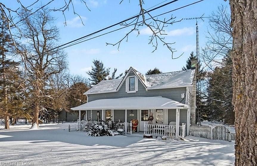 Where do I begin with this special property? Set on a one acre lot mere minutes to 401 access, this unique offering gives an inviting living space while also presenting an opportunity to work from home. Circa mid 1880's log home with a living room addition, you'll appreciate the character that has been retained with exposed log walls and warm wood floors. Upon entering, there is a nice mudroom off the driveway with a convenient laundry room adjacent to it. This leads into the living room with its beautiful woodburning fireplace. A den off the living room takes you into the original home with its lovely dining room, eat-in kitchen with door to the large front porch and there a 3pc bathroom that has a clawfoot tub. A sunroom off the rear of the house is the perfect spot to host summer meals. The upper floor has a spacious primary bedroom with lots of closet space and a pleasant surprise in the form of a 3pc ensuite! 2 additional bedrooms share this level. The backyard makes you forget you are actually in the City! Backing onto conservation land, there are tall trees, a 10' x 10' plunge pool that is 4' deep and tennis court. This is where you will be spending many hours in the summer. A fire pit for making smores under the stars is also waiting. The detached garage ... not only can you park your cars in it, there is an L-shaped storage room behind as well as a workshop area with access to the pool area that could be transformed into a cabana! Upstairs hosts a games room on one side and an oversized office with skylights and a 3pc bath on the other! For those working from home, it offers a space with tons of natural light while giving separation from the house. Perhaps it could be a guest suite or nanny quarters. The possibilities are endless! The location is so convenient for commuters needing access to the 401 heading east or west as well as a short drive for groceries, Conestoga College - Doon Campus and Whistle Bear Golf Club.