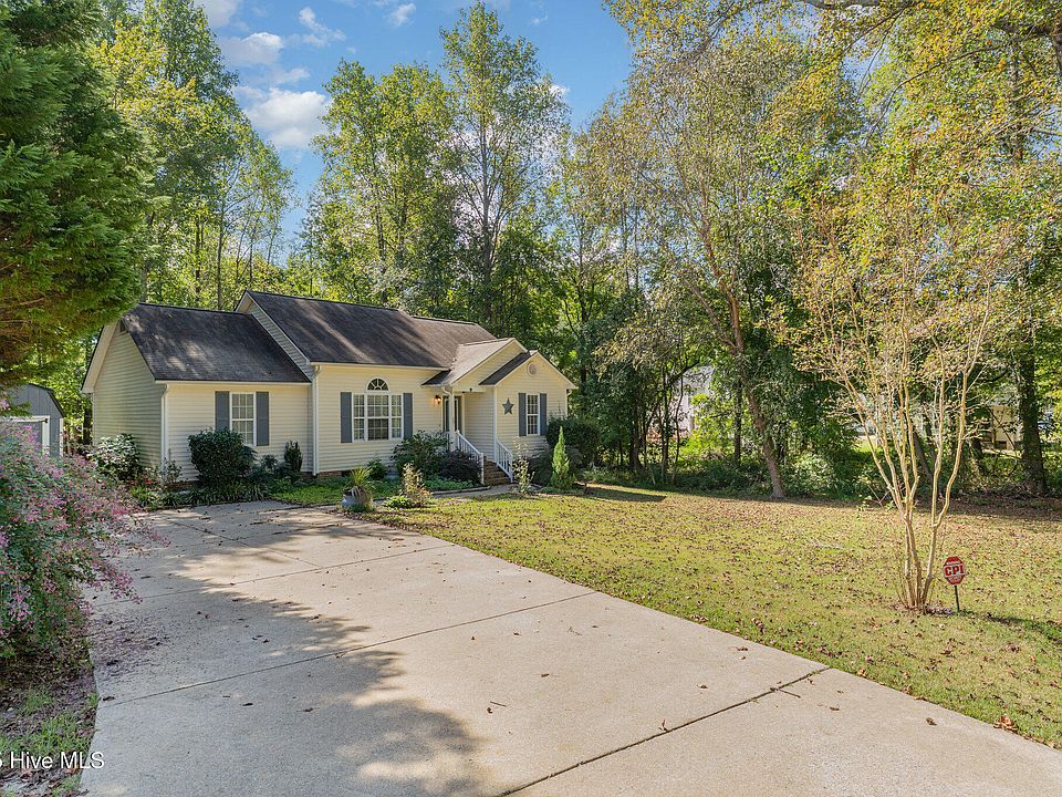 Welcome home to this charming ranch with space to grow! This well-maintained property features updated hardwood and tile flooring throughout—no carpet anywhere. The family room boasts vaulted ceilings and opens to a bright dining area, perfect for everyday living. The kitchen includes a spacious breakfast bar, ample counter space, and a beautiful tile backsplash. A nearly new stove and microwave are included, along with the refrigerator, washer, and dryer. The split floor plan offers added privacy. The primary suite features vaulted ceilings, hardwood floors, and a stylish barn door leading to the en-suite bathroom. Two additional bedrooms provide plenty of space and comfort. Step outside to a large deck overlooking a private, wooded backyard with room to create your own outdoor retreat. Conveniently located near local farms, shopping, and schools, this home combines comfort, style, and convenience in one great package.