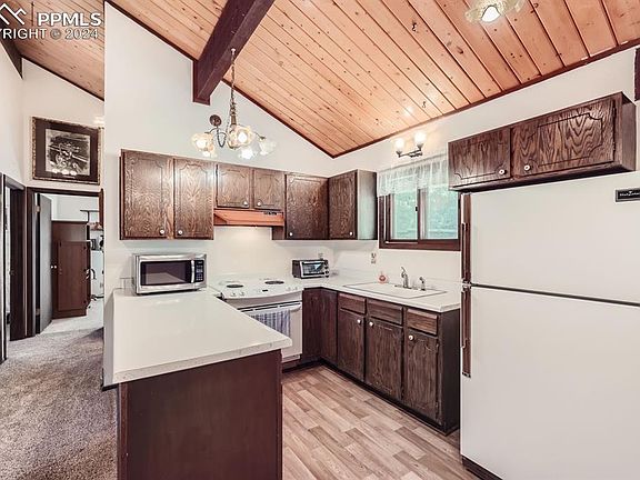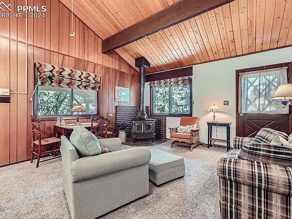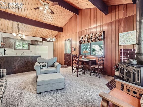Nestled in the heart of Green Mountain Falls, this charming 2-bedroom, 1-bathroom cabin offers a perfect blend of rustic charm and modern convenience. Enjoy breathtaking mountain views from the large deck, ideal for morning coffee or evening relaxation. The cabin features vaulted ceilings and a spacious living room, creating an open and inviting atmosphere. Located within walking distance to the serene lake and close to numerous hiking trails, this home is a nature lover's dream. The property also includes a covered carport, ensuring your vehicle is protected year-round. Whether you seek a peaceful retreat or an active outdoor lifestyle, this cabin provides the perfect sanctuary.
