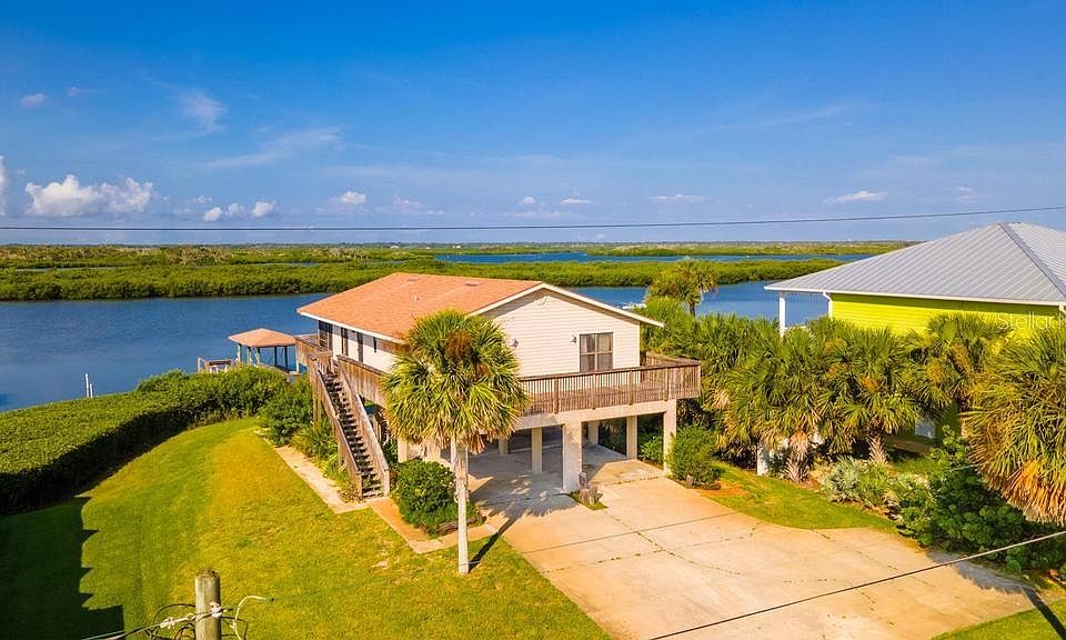 Once in a lifetime opportunity! Direct Riverfront! Enjoy peaceful sunsets on the 28X8 screened porch with breathtaking river views. The home has a private walkway to the boat lift. Just grab your boat and you can be on the intracoastal in minutes. Manatees will greet you at the dock. Just a short walk to the ocean's public walkover in an area where there is no driving on the beach. Living area is one level with open living room/dining area, kitchen, two bedrooms, two full baths and a laundry room. Nantucket feel in great room. Open and inviting. Tongue and groove ceilings. Wood parquet tile. Beadboard backsplash and floating open shelves in the farmhouse, white kitchen. Updated bathrooms with designer tile. Stainless steel appliances. Fully furnished. Huge storage room on first floor. This home sits high on a 75X150 lot. Beautiful manicured mangroves separating water from the backyard. Front deck facing beach. Minutes to the ocean and Canaveral National Seashore and beloved JB’s Fish Camp! NSB staple. Two car carport. Lots of parking under house and long driveway Will go fast!