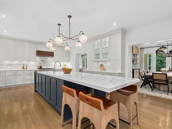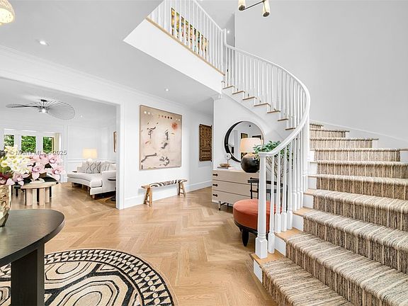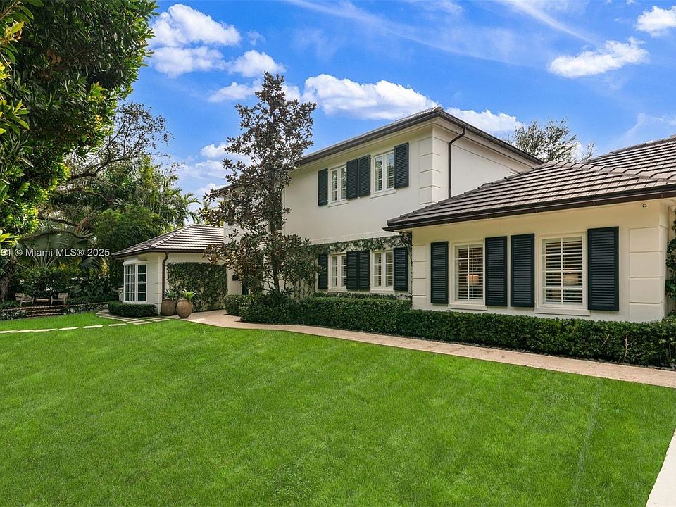 Discover this custom built Colonial style home in the highly sought after South Gables on Granada Blvd. The grand two story foyer welcomes you to an exceptional floor plan with ample storage. Enjoy spacious formal living and dining rooms along with a separate family room for both adults and children which all lead to a chefs dream kitchen with a gas stove and eat in area. French doors in the entertaining areas open to a fantastic covered patio, with summer kitchen, overlooking a sparkling pool and putting area. The ground floor features a wonderful primary with walk in closet, office, and guest room. Upstairs are three bedrooms with a two baths and a den. Additional amenities include a two car garage with AC, wine cellar, storage room, cabana bath, and full house generator.