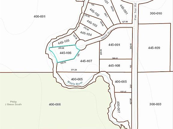 What an incredible parcel of buildable Maple River waterfront. Located just south of Woodland Rd where the trout fishing is the best. This is a high and dry lot on a bend in the river with nice deep trout holes.