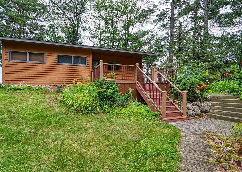This charming three-season cabin is the perfect summer retreat designed for relaxed lakeside living, offering water frontage on both the big lakeside & Musky Bay side of Lac Courte Oreilles. Spend your days soaking in the lake views from the spacious screened porch, the perfect spot for morning coffee or evening unwinding. When the summer nights turn cool, cozy up by the fireplace to take the chill off. A large detached garage provides ample storage for vehicles, boats, and recreational gear, ensuring you have everything you need for a fun-filled season on the water. Whether you're looking for a weekend getaway or a seasonal escape, this cabin is ready to make your Northwoods summer memories unforgettable. Water frontage is approximate: northside of the lot approx. 70 ft and southside of the lot approx. 78 ft (measured from county mapping). Acreage is from tax records. Subject to Seller installing driveway, well and electric independent from cabin 6874N.