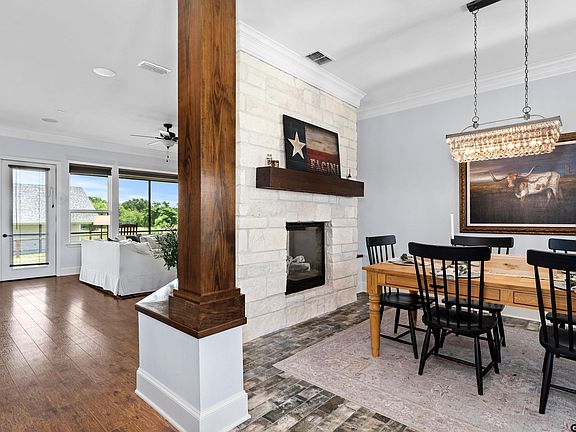 JUST REDUCED!!! This unique custom ranchette has AMAZING & dramatic views of rolling hills like no other in this highly-desired gated community. 10.04 AG exempt acres with a 2-stall barn, air cond. tack room, hay barn & hot-cold water. Premium vinyl horse fencing & a decorative metal gate. The custom touches throughout include the dramatic stone accent wall in the living room & double sided fireplace that gives this home exquisite & unique character! Each bedroom has its own ensuite bath. SS Appliances in kitchen, gas cooktop & double oven for the chef of the family! It comes fully furnished with furniture designed by the Pottery Barn Design Gallery. There is a storm shelter in the front bay of the 3 car garage-equip storage room, energy efficient foam insulation throughout house-garage, screened in back porch & recently upgraded AC system. The community amenities include a private lake stocked with game fish, beautiful pool, cabana, pickleball court, boat launch & private marina. Close to all local amenities including hospital, restaurants, grocery stores and downtown square but feel like your out in the middle of the country. Escape for the weekend or forever!