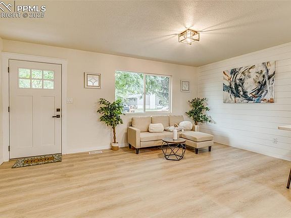 WELCOME HOME to This fully remodeled 4-bedroom, 2-bathroom home features a bright, open-concept layout designed for comfortable living. The spacious living area flows into a modern kitchen with updated countertops, stainless steel appliances, and ample cabinet space. A sunroom at the back of the home offers a light-filled retreat, perfect for relaxing, working from home, or hosting guests. All four bedrooms are generously sized with fresh flooring, updated finishes, and plenty of closet space. The two remodeled bathrooms are thoughtfully designed with clean, modern fixtures and tilework. Whether you need space for a home office, guest room, or hobby area, this layout offers flexibility to fit your lifestyle. Step outside to enjoy a large backyard ideal for gatherings, gardening, or simply taking in the mountain views. The landscaped front yard features a beautiful mature shade tree, adding charm and curb appeal. Ideally located near Fort Carson, shopping, schools, and scenic hiking trails, this home offers both comfort and convenience in a well-connected neighborhood.