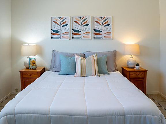 Bright and airy roomsPrivate fenced backyardDesert floraAmple storageComfortable bedsShaded patioIn-unit washer and dryer