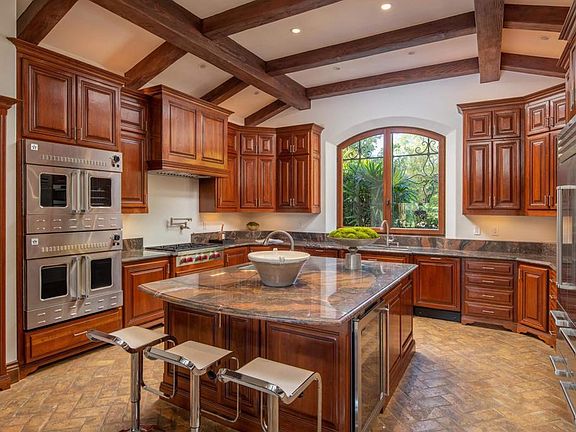 Santa Barbara chic with touches of Mediterranean and French Provincial design behind private gates create a soothing atmosphere of peace and tranquility in this exquisite property located on what many consider the preeminent street in the Covenant of Rancho Santa Fe. 5 en suite bedrooms including a first floor master suite with fireplace, beautifully appointed walk-in closet, and direct access to the mirrored yoga room/gym and 40 foot infinity pool. Only one room on second floor, a bedroom with full bath makes a perfect office with a view and built in shelving. All other living space is on first level. Renovated top to bottom in 2011, no expense was spared in acquiring the finest materials and craftsmanship. Rich walnut floors throughout. Custom French cabinetry and Italian tilt and turn windows. Top of the line Wolf appliances with Blue Star double door French oven. This chef's kitchen flows seamlessly into the great room with vanishing doors leading onto the covered logia with fireplace and breathtaking view, making this an entertainer's paradise. The gardens were the creation of renowned local landscape architect Theresa Clark and are beyond description. Must be seen. In addition to oranges and lemons, pick your own Black Mission Figs, Red Baron Peaches, Pummelos, Mexican Limes, and Asian Pears. 13 raised planter boxes give you an open canvas to grow all of your favorite vegetables. Spectacular roses, Wisteria covered pergolas, and winding gravel paths welcome you to a dreamy utopia. Upgraded lighting and Sonos sound systems all controlled with your smart phone.