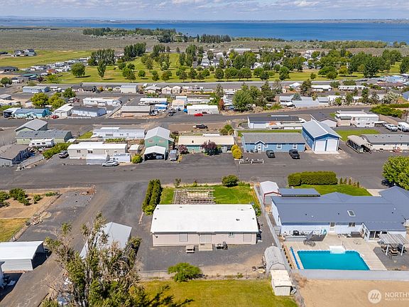 Located in Marina View Heights, this 3-bed + office/den home offers panoramic lake views and breathtaking sunsets. The open great room features vaulted ceilings and flows into a kitchen with butcher block counters, perfect for entertaining. Step outside to an oversized deck designed to take in the scenery and host guests. Detached 480' garage/shop, separate storage unit, plus RV and boat parking. Enjoy the beauty of the outdoors with Potholes State Park and MarDon Resort just minutes away. A perfect blend of comfort, space, and stunning views!