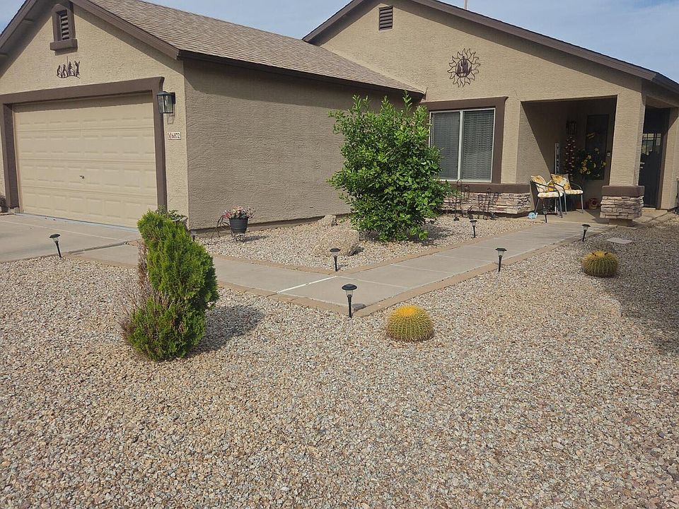Beautifully maintained single-level 3BD/2BA home in Magic Ranch Estates featuring tile in all the right places and cozy carpeted bedrooms. The open kitchen offers matching appliances and a clear view to the backyard and pool area, perfect for everyday living and entertaining. The primary suite includes a private en-suite bathroom with a full walk-in shower and a spacious walk-in closet.