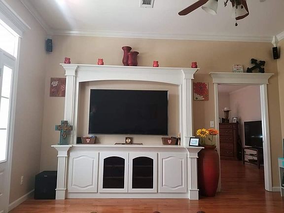 Custom entertainment center in living room with surround sound system! All kitchen appliances stay with home!