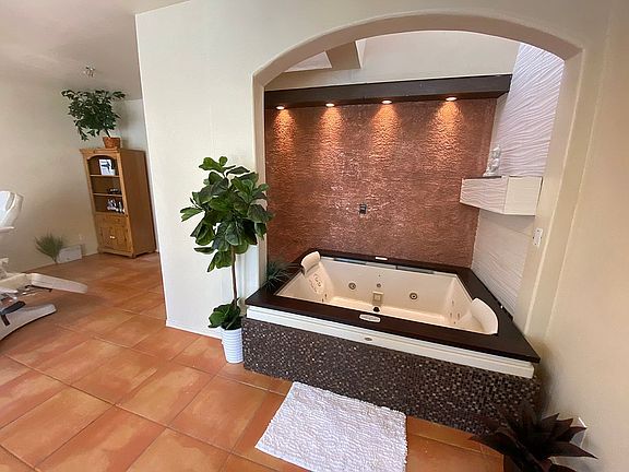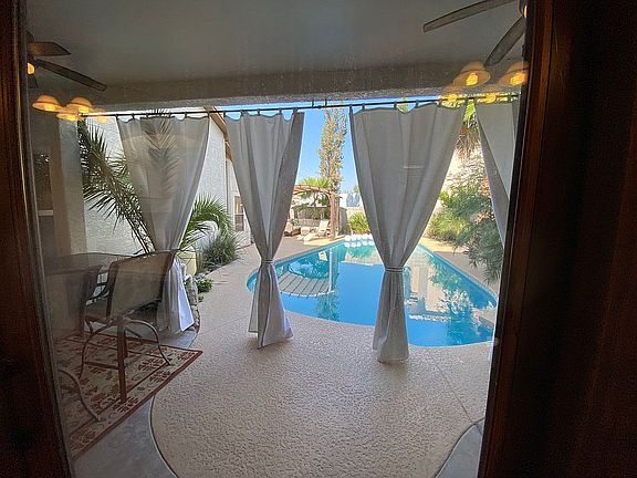 Beautiful and unique home. This home has 4 bedrooms and 2 1/2 bath.. Grand entrance with extravagant staircase. High vaulted ceilings. Addition includes master suite spa oasis and second story bedroom guest suite., the guest suite includes a custom and private walkway with a beautiful spiral staircase. The Master suite spa includes chromotherapy dual jacuzzi. The other additions are the Arizona room and office. Unique size pool with LED lights in a backyard oasis. Split floor plan and so many upgrades throughout the entire house, Double pane windows and Low E vinyl windows.. Huge Architect Series Pella French doors in Master Suite.