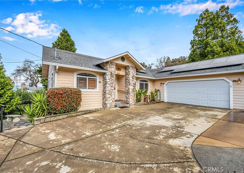 Lucerne Living!!! Come see this beautifully maintained, turnkey 3 bedroom, 2 bath home with spectacular lake views. Step inside and fancy the open-concept with a family room that seamlessly connects the dining room and kitchen. The spacious kitchen features alluring cabinetry, gorgeous quartz counter tops, a breakfast bar and a gas range perfect for all your meals. The covered deck ensures year-round enjoyment of the outdoors, even on rainy days. It even comes with a built in barbeque with plumbed in propane, and a hot tub perfect for unwinding at the end of the day. A primary bedroom that boasts an impressive en suite bathroom, featuring a stunning tile floor and countertop with a soothing jetted tub and a separate shower with a spacious walk-in closet. Two additional airy bedrooms, one of which has it's own entrance to the hall bathroom with a tub-shower combo. There is an abundance of closet space throughout the home for all your storage needs. An indoor laundry room with additional storage that homes a beautiful washer and dryer just for you. You'll appreciate the low maintenance yard, leaving you plenty of time for your leisure. The oversized two car garage includes a utility sink and plenty of room for tools and work bench. There is additional parking via the covered carport. To top this home off, it has leased solar panels, to help keep your electric bills to a minimum.