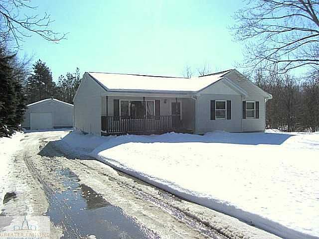 Wonderful home on 5 acres, great location wooded, close to schools and highway. This home was built in 2004 featuring a wonderful kitchen that is open and spacious with a cathedral ceiling, lots of natural light, tile floors and perfect for the chef in the family. The kitchen overlooks the gorgeous backyard with large deck, built in swimming pool with the woods across the back with lots of wildlife. The large master bedroom is accompanied with a master bath, and leaded glass French doors leading to the deck. The other 2 children's bedrooms are adorable with neutral decor. The lower level has a large rec room ready for the big screen tv, an office, and a large bedroom that is being used for an exercise room. Home offers over 2400 square feet of living space. The backyard is the perfect location for entertaining with the surround deck walking down to the built in swimming pool that is equipped with sound system, newer safety cover, filter and shed. The pole barn is handyman's dream. This home has over 15000 dollars in renovations in the last 5 years with air conditioning, carpeting, paint throughout, fixtures and hardware, french doors, garage doors, bathrooms updated, water softener and pool filter. Call today for a showing.