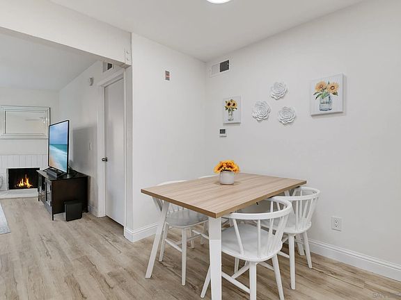 Welcome to this modern and unique ground-level condominium boasting a spacious 831 square foot living space, featuring one bedroom one bath and an extra half bath conveniently located at the entryway next to the in-unit washer dryer. A sunny south-facing living area with a cozy fireplace and updated laminate flooring plus central A/C and heating throughout, perfect for comfort, relaxing and entertaining. The kitchen is fully equipped with modern appliances, a separate dining area and a bar height counter for extended space. Enjoy the luxury of the outdoor patio, surrounded by lush landscaping, ideal for morning coffee or evening sunsets. An assigned private garage is included with this home with additional optional storage. Community amenities include a refreshing pool and spa, sporty tennis courts, common outdoor space, and a clubhouse. Easy walk to Cowles Mountain Trailhead for outdoor adventures, a drive 10 minute or less to Grossmont Center, Lake Murray, San Diego State University and less than 20 minutes to the beach. This home presents the perfect blend of modern living, comfortable interiors and serene surroundings in a vibrant convenient location.