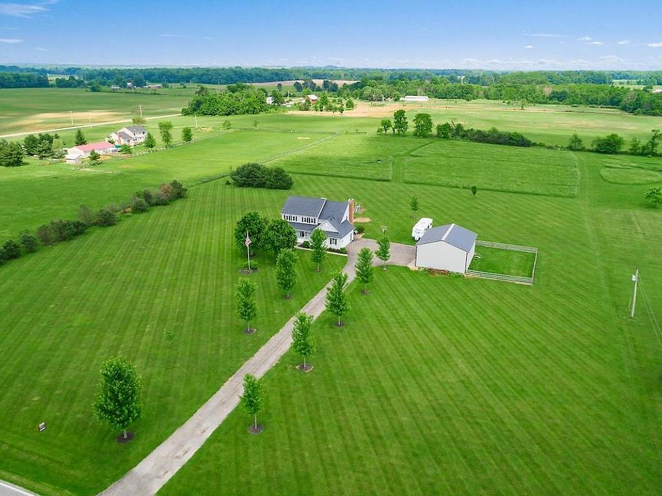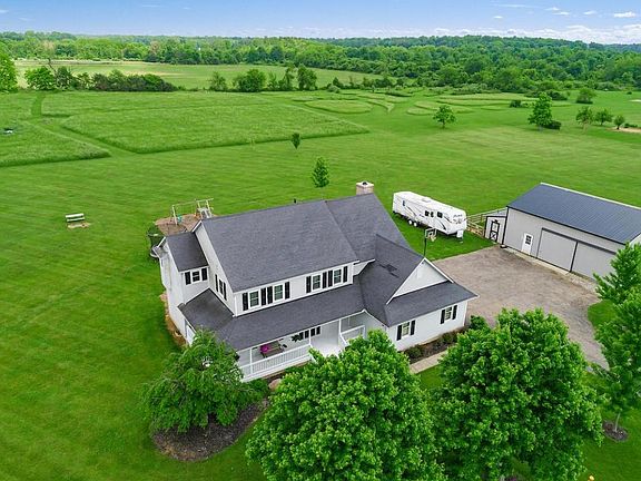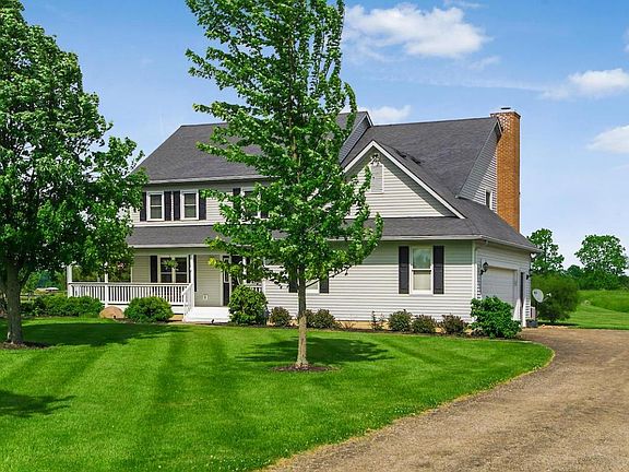 Open house 6/3 12-3. Gorgeous country living on 7.67 acres. This home has it all with updates including a roof, windows, furnace, siding, exterior doors, appliances, hot water heater, flooring, carpet, and pole barn. Relax on the wrap-around front porch, inviting foyer, living room, dining room w/tray ceiling, mud room, 1st floor & 2nd floor laundry, big and open kitchen with island and stainless appliances. Entertain in the family room with a wood burning fireplace. Upstairs has three generous sized bedrooms full bath, and a big master suite with an oversized bathroom w/jetted tub and a large walk-in closet. Finished basement with plenty of storage, pole barn with attached dog house & run, and a deck to enjoy the sunsets overlooking the huge backyard. This home is ready for a new family.
