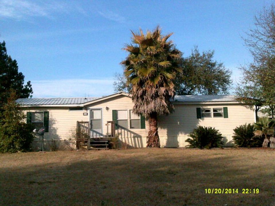 Want an affordable home in a small town, not far from I-10. Here it is. Split bedroom design, mobile home needs some TLC. All bedrooms have walk-in closets. On 1 acre MOL, with city water and sewer. Not included in sq. footage, is 9x12 bonus room ( has no H/A). Could be sewing room, office or storage room. Need to park an RV, property has a metal, 24x35 garage with two roll-up doors-9x8 and 10x12, 110 elec wire and two attached, car ports. Covered 8x14 deck and 10x13 metal storage shed.Seller will give buyer allowance of $5,000 for carpet and kitchen updates.