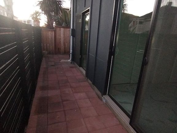 A sliding glass door in each bedroom room with patio space just outside the door.