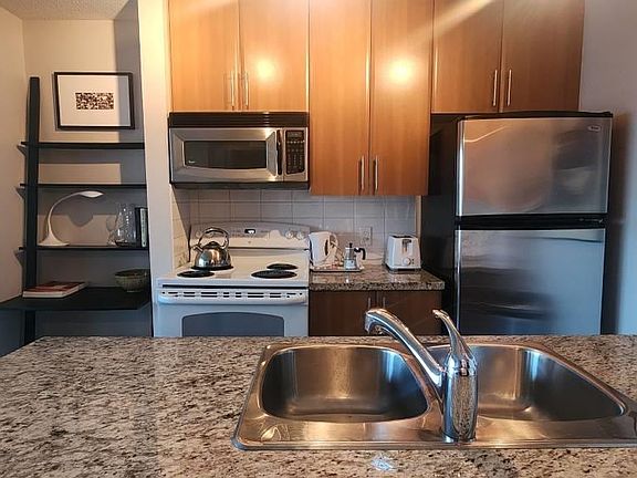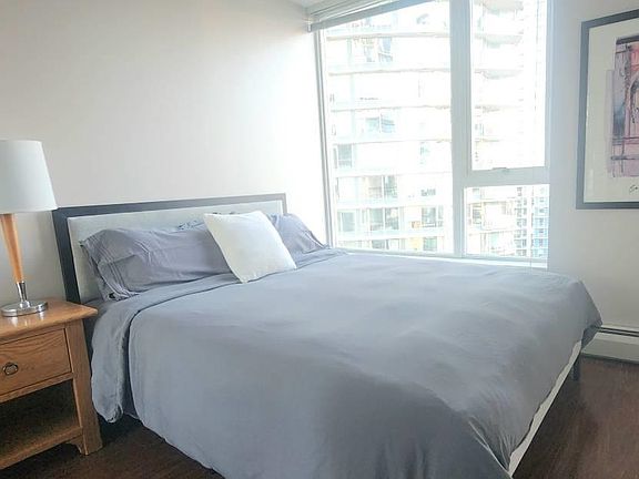 New Queen bed in the main bdrm, a single bed in the den and a double sofabed in the livingroom. 3 sleeping areas to accommodate people sharing. Well equipped kitchen, with granite countertops, 2 barstools and all new pots and pans, frypans, plenty of dishes, glasses, cups, etc Everything New in the unit, such as towels, bedsheets, comforter, and all kitchenware Amenities on floor 3: Indoor swimming pool Sauna and Jacuzzi Private garden and pond area TV lounge room 1 Parking spot Skytrain station across the street for easy transportation 5-10 min walk to the Downtown Business District for work or meetings. Close to great restaurants, Art museums, Mall shopping ctr, and more! Contact for view Inclusive of Wifi-Internet,utilities and parking if needed