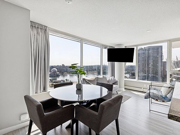 Renovated corner unit with stunning water views at Firenze Tower II! This 2 bed + 2 bath + den + solarium home features southeast exposure, abundant natural light, and modern updates. Enjoy resort-style amenities including a 25m indoor pool, hot tub, sauna, and party room. Unbeatable downtown location steps to the Seawall, Gastown, Yaletown, Rogers Arena, BC Place, Costco, and top restaurants. Includes parking & bike locker. Short-term rentals permitted.**
