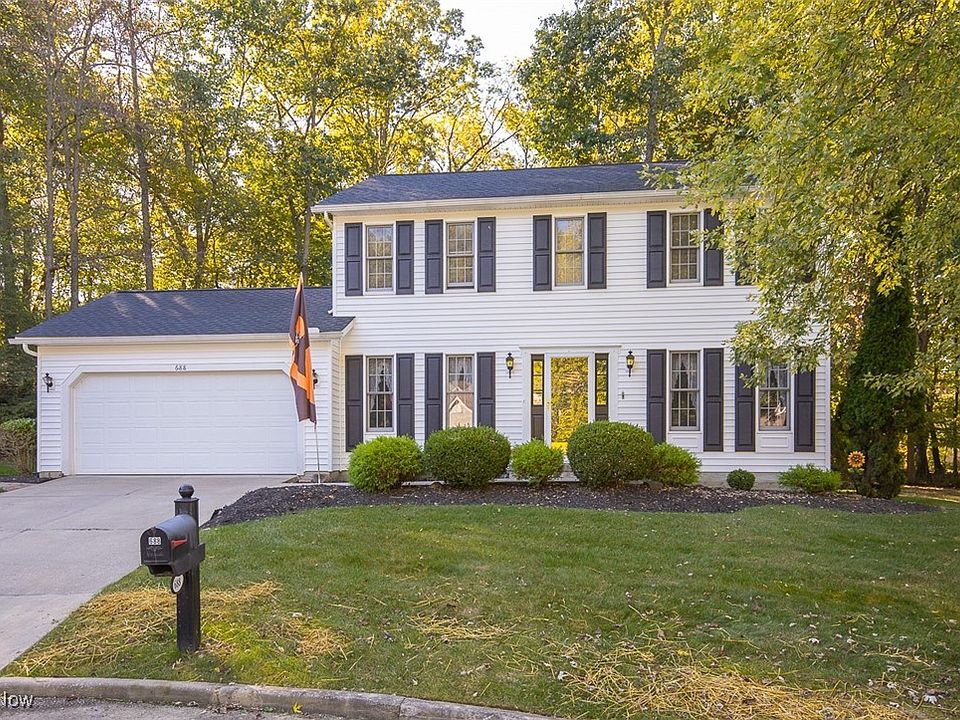 Fabulous opportunity to purchase this lovingly maintained one-owner Colonial in Greenwood Village! This 4 bedroom, 2 ½ bath home sits on the end of a cul-de-sac and backs to the woods. The eat-in kitchen is open to the family room with its cozy, gas fireplace and the front living room could easily be used as a home office. A formal dining room, a half bath, and a laundry room complete the first floor. Upstairs the spacious master bedroom has an ensuite bathroom and a walk-in closet. There are three additional bedrooms and a another full bath. The unfinished basement allows plenty of room for storage and space to finish it to your heart’s delight. Significant recent updates include: New furnace and A/C in 2025, and a new roof, gutters, and siding in 2024. Live the resort lifestyle in Greenwood Village with both indoor and outdoor pools, clubhouse with workout area, tennis courts, fishing pond, community activities, and trails that lead to the national park and bike and hike. Set up a tour today!