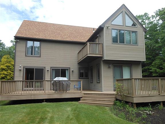 ATTRACTIVE ONE OWNER CONTEMPORARY HOME FEATURING UPDATED CHERRY KITCHEN WITH GRANITE COUNTERS AND AN ISLAND, CATHEDRAL FAMILY ROOM WITH BRICK FIREPLACE, LARGE MASTER BEDROOM SUITE WITH WALK-IN SHOWER STALL AND FLORIDA STYLE ROOM WITH A HOT TUB, UPGRADED HYDRO-AIR HEATING SYSTEM WITH CENTRAL A/C, VINYL SIDING (~7 YRS), NEW ROOF (~8 YRS), UPGRADED ELECTRIC TO 200 AMPERE W/BREAKERS AND WHOLE HOUSE GENERATOR, 2 DECKS WITH COMPOSITE DECKING AND MUCH MORE - ALL SITUATED ON 4.8 ACRES OF LAND WITH THE HOME SET BACK ABOUT 250' FROM THE STREET FOR PRIVACY. THERE IS A SMALL PORTION OF THE LAND IN SCITUATE (PLAT 48-1, LOT 176) WITH A SCITUATE TAX BILL OF $170.97/YEAR.
