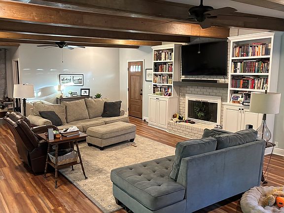 Large primary suiteSpacious updated kitchenBuilt-in bookshelvesWood-burning fireplaceStainless appliancesQuartz countertopsCottage on the property