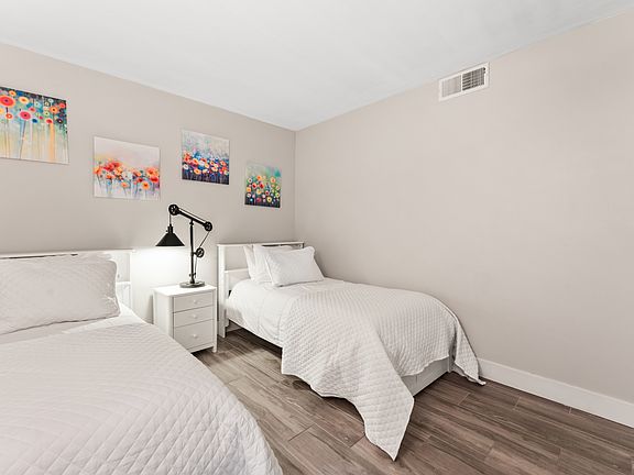 As you move through the home, you'll find three well-appointed bedrooms, each thoughtfully designed to provide both comfort and style. The primary suite offers private access to the deck, allowing you to wake up to the soft glow of the sunrise reflecting off the lake. The two additional bedroomsone set up as a guest retreat and the other easily convertible into an officemake the space adaptable to your needs. The two spa-like bathrooms feature sleek finishes, ensuring relaxation at the end of any day.