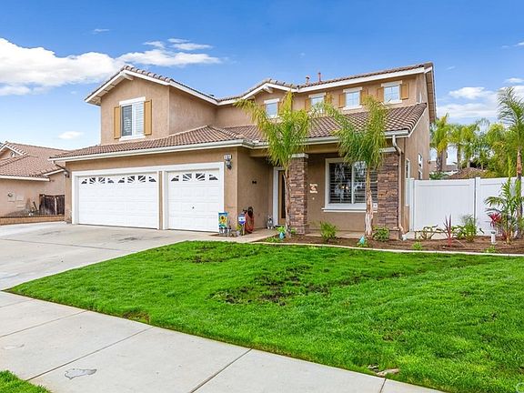 **POOL HOME WITH SOLAR** Absolutely stunning home with all the right upgrades and amenities! Located in the heart of South Corona and in the most desired schools in the area. Upgrades include decorative leaded glass entry door, plantation shutters, decorative wrought iron stairwell banister, built in media niche, ceiling fans, upgraded light fixtures, whole house fan, stainless steel appliances, decorative kitchen counter back splash, tile floors, just to name a few and that is just the interior which as you can see has been meticulously decorated and maintained. Enjoy those summer afternoons with friends and family while barbecuing on your own palapa covered barbecue island and entertaining with your very own sparkling rock pool and spa! Stay cool in the shade under the solid patio cover which includes ceiling fans, accent lighting, audio speakers outside TV.